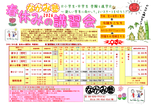 テキスト、宿題忘れの場合は、授業後に残っていただき、補完を行いますので、授業時間の延長があります